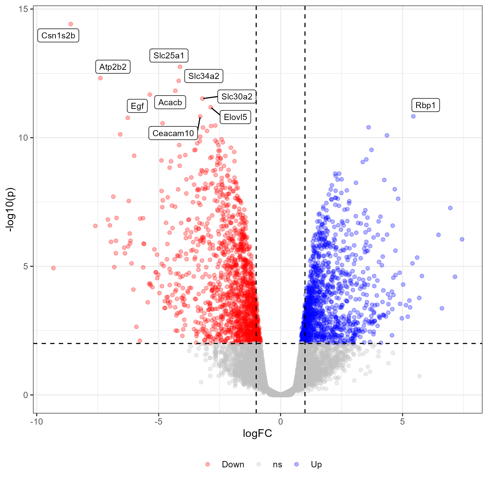 Then you can try to label the 10 most significant genes in the volcano plot