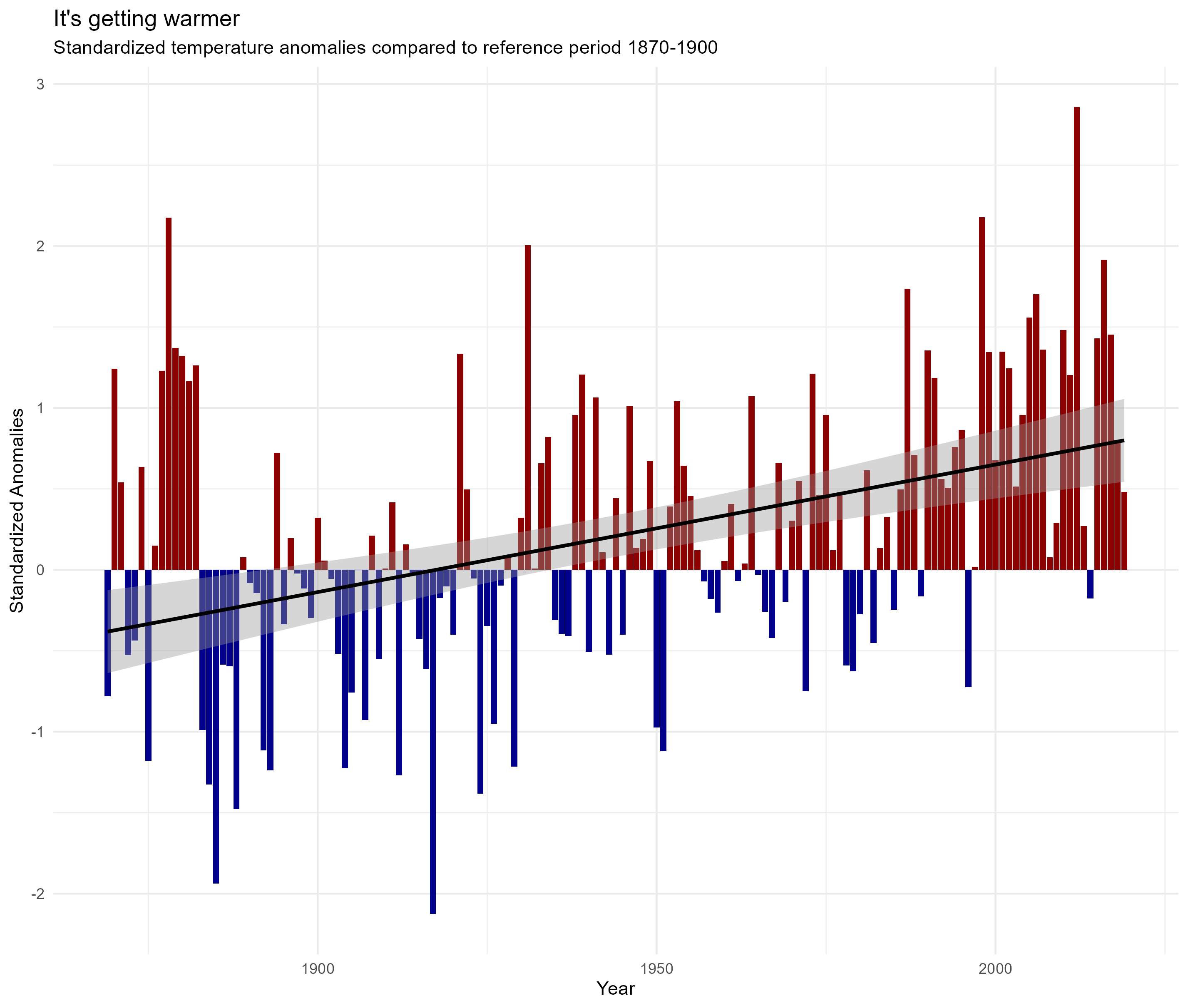 - Tip: You can define an anomaly relative to a reference period (1870-1900). The standardized anomalies are calculated like this: